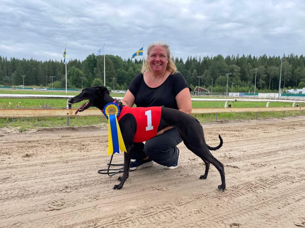 Vinnare SM whippet sprint B-final YM's Primadonna (svart)